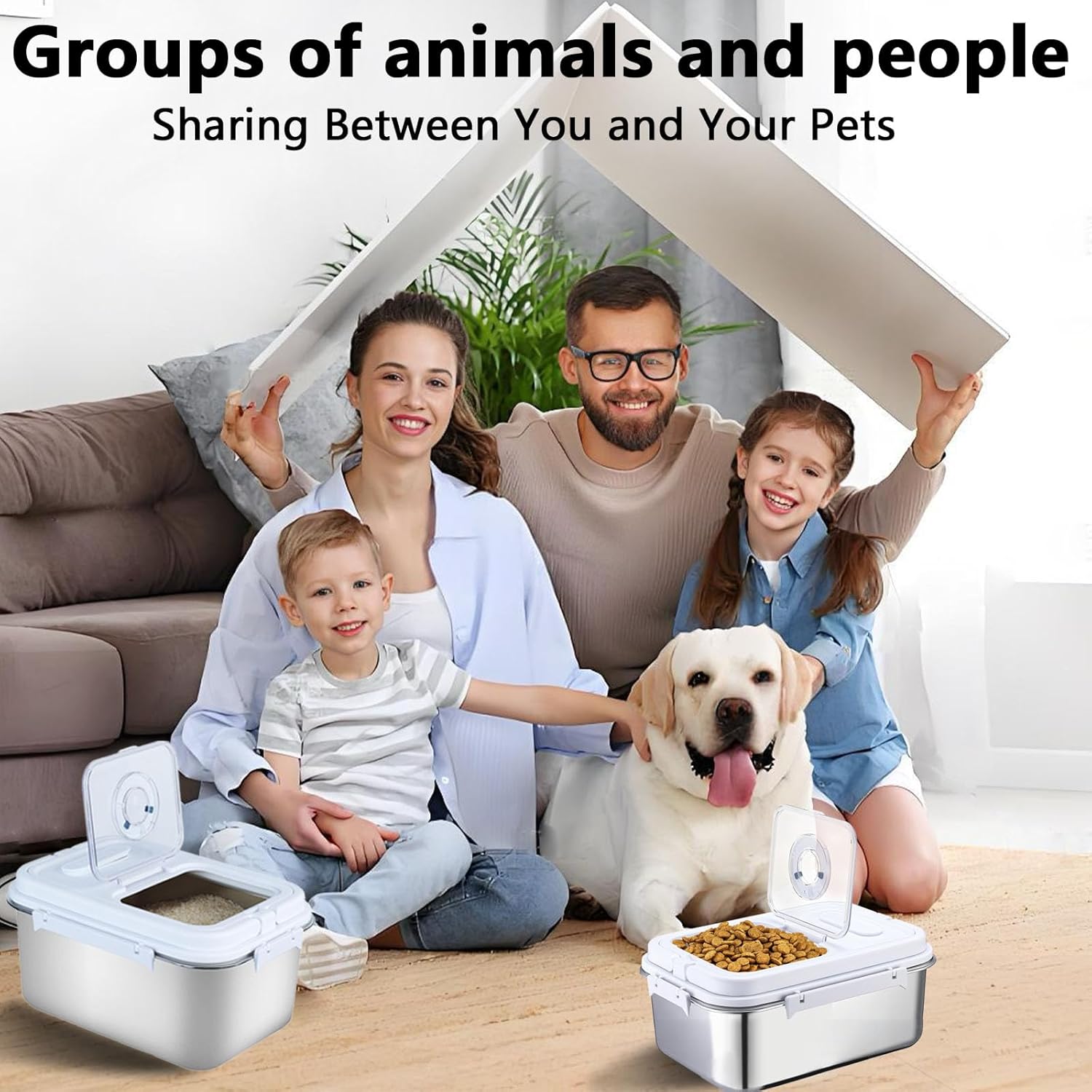 - Airtight Food Storage Container: Four sides of the storage bucket are leak-proof sealing tight, the dog food containers with lids are built with thick silicone seals, which can ensure that your pet food stays dry and fresh, to prevent moisture in the air from entering, so that your pet can eat fresh food every day