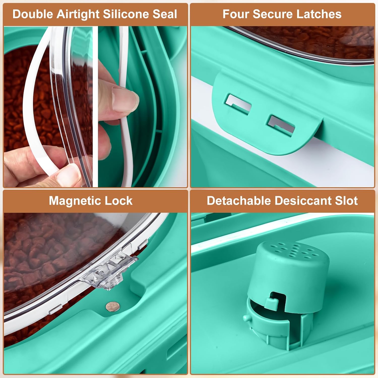 - Airtight Freshness Protection: This airtight dog food storage container features a Snap lock lid and double air-tight seal, lock out moisture and humidity. There is also a desiccant card slot on the inside of the lid, and you can also place a desiccant to further prevent moisture intrusion