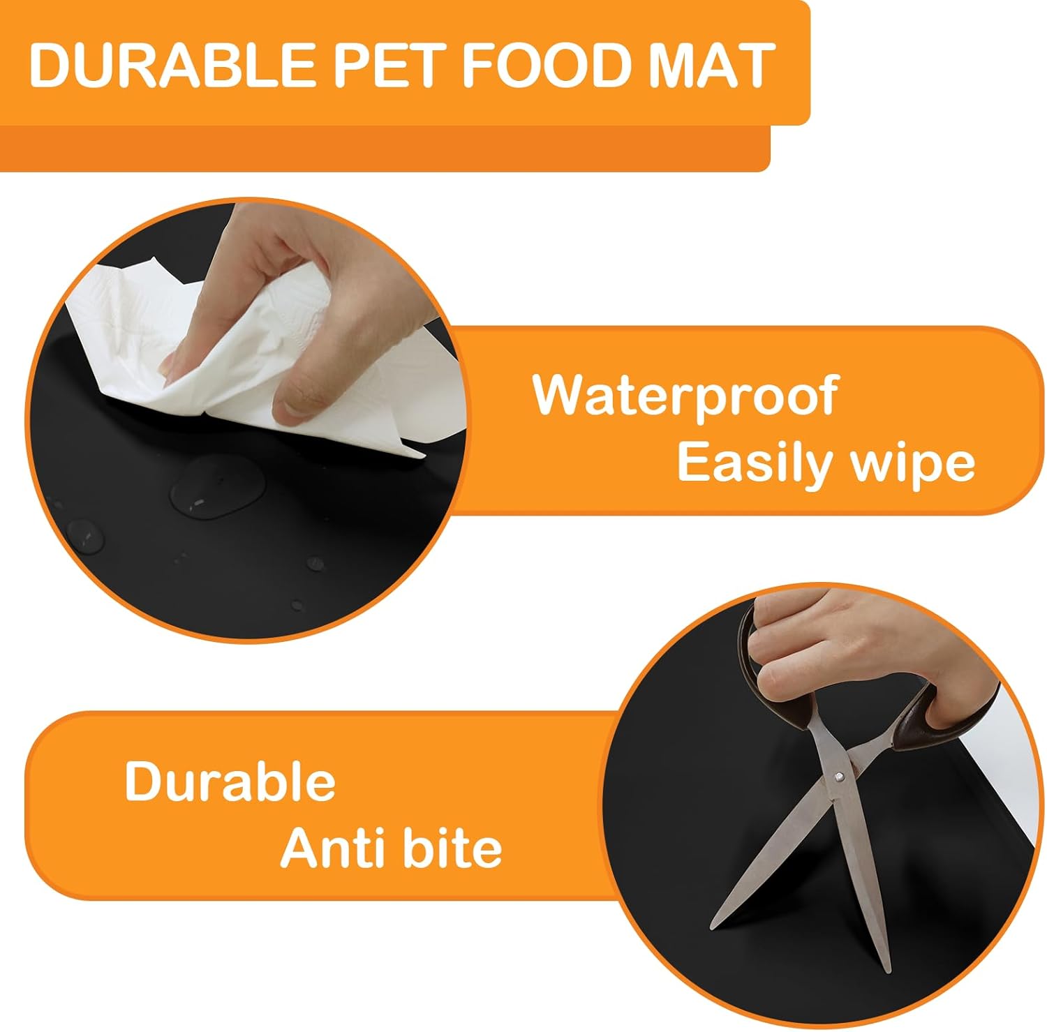 - 【Pet Food Mat】Our dog and cat feeding mat is L39.4''×W29.5''(3.7LB), which is the largest one on the market, can easily hold several pets eating together.