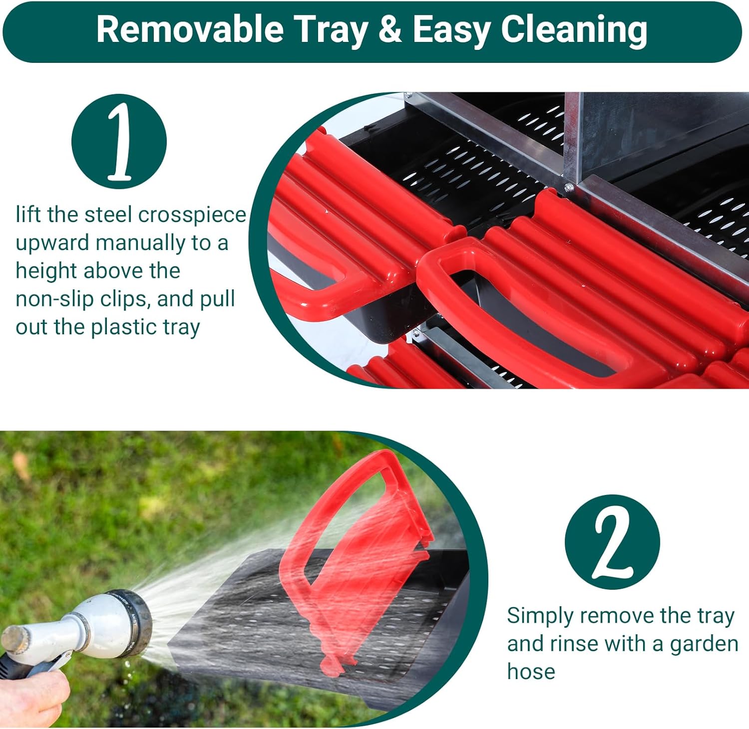 - CONVENIENT EGG COLLECTION MECHANISM: The unique tilting design of this nesting box allows the eggs to roll automatically into the collection tray for quick and easy egg collection. Say goodbye to tedious manual egg picking, you can easily access fresh eggs while ensuring they are intact.