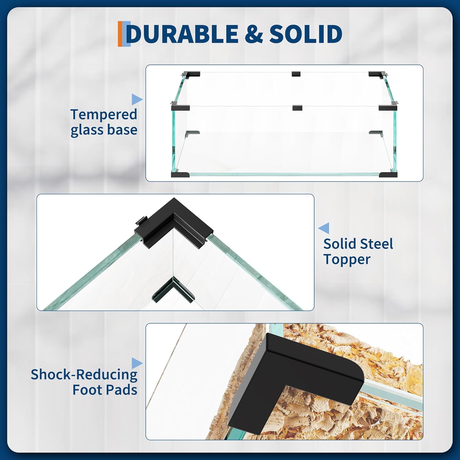 - 【Safety & Comfort】: This syrian hamster cage has good air circulation, ensuring the health and comfort of your pet. The cage is equipped with shock-absorbing foot pads for enhanced stability;The big hamster cage's frame attaches to the glass bottom with clips, making disassembly quick and cleaning hassle-free.