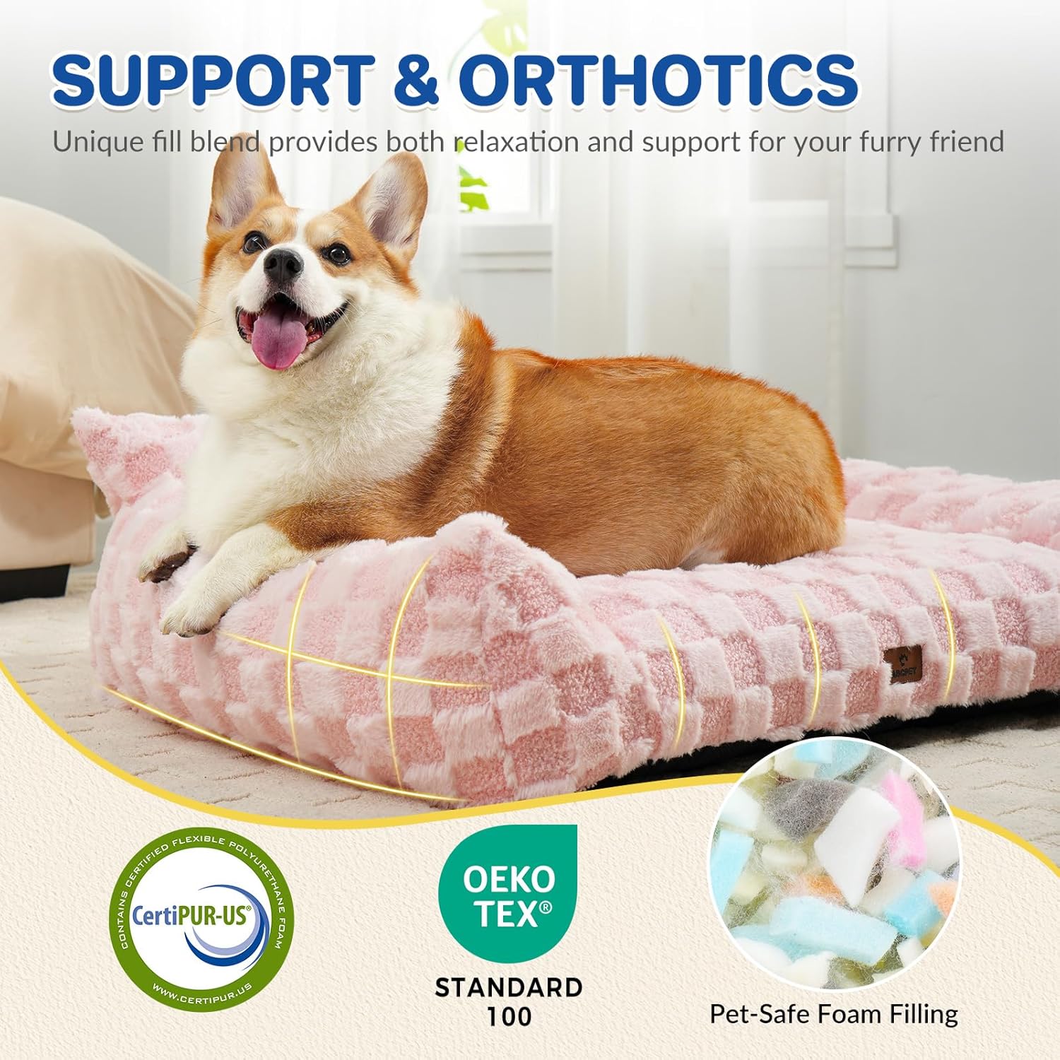 Cat Bed Cat Couch for Puppy and Kitten, Fluffy Dog Bed Medium Dogs Couch, Supportive Cats Sofa for Indoor Cats, Washable Cover & Non-Slip, 32 inch, Pink