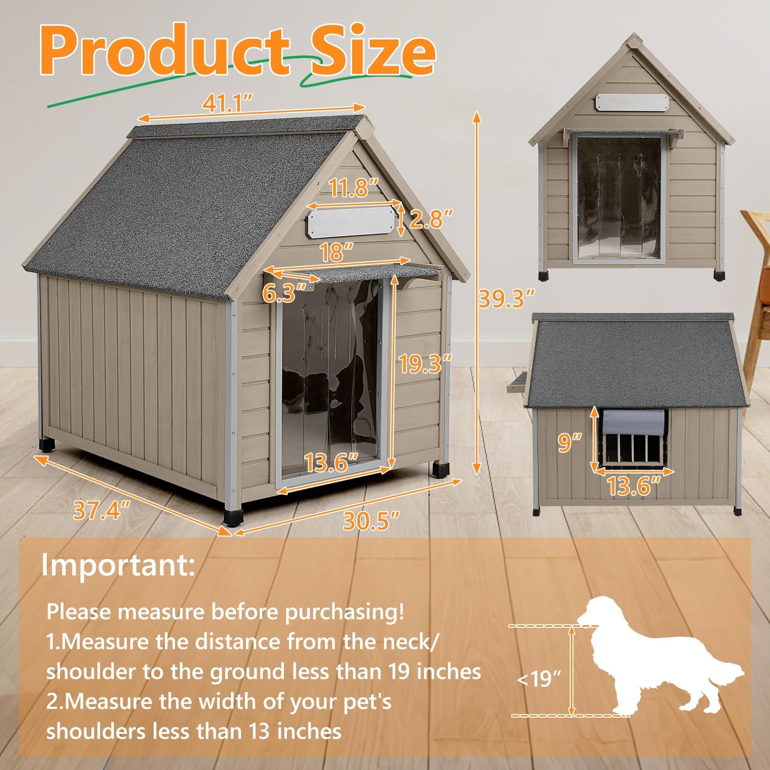 - Great for Medium to Large Dogs: This sturdy outdoor dog house features a spacious 28.5" x 35.6" interior, perfectly sized for medium to large breeds. PRO TIP: Measure your dog's shoulder width before purchasing to ensure a comfortable fit through the doorway of this large dog house