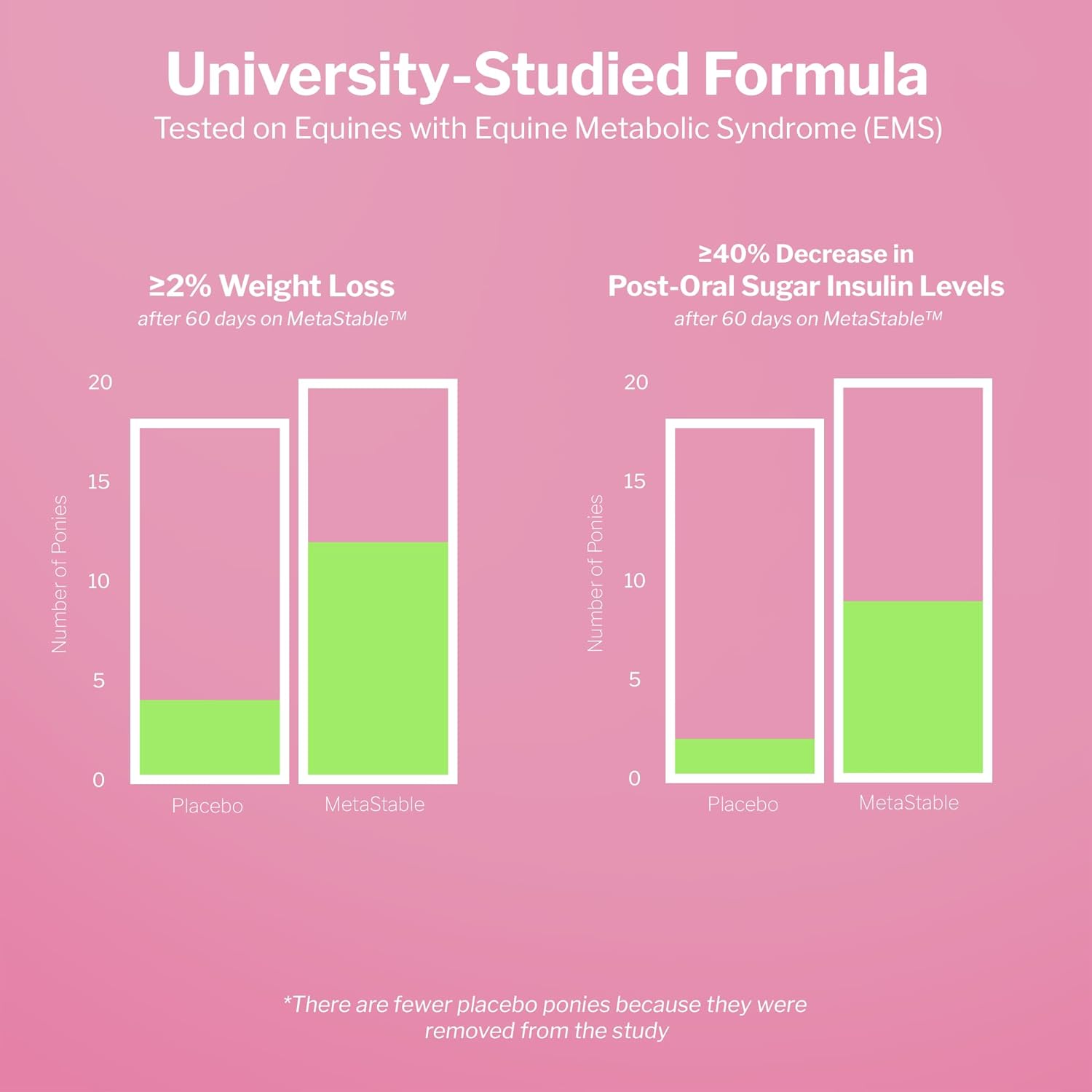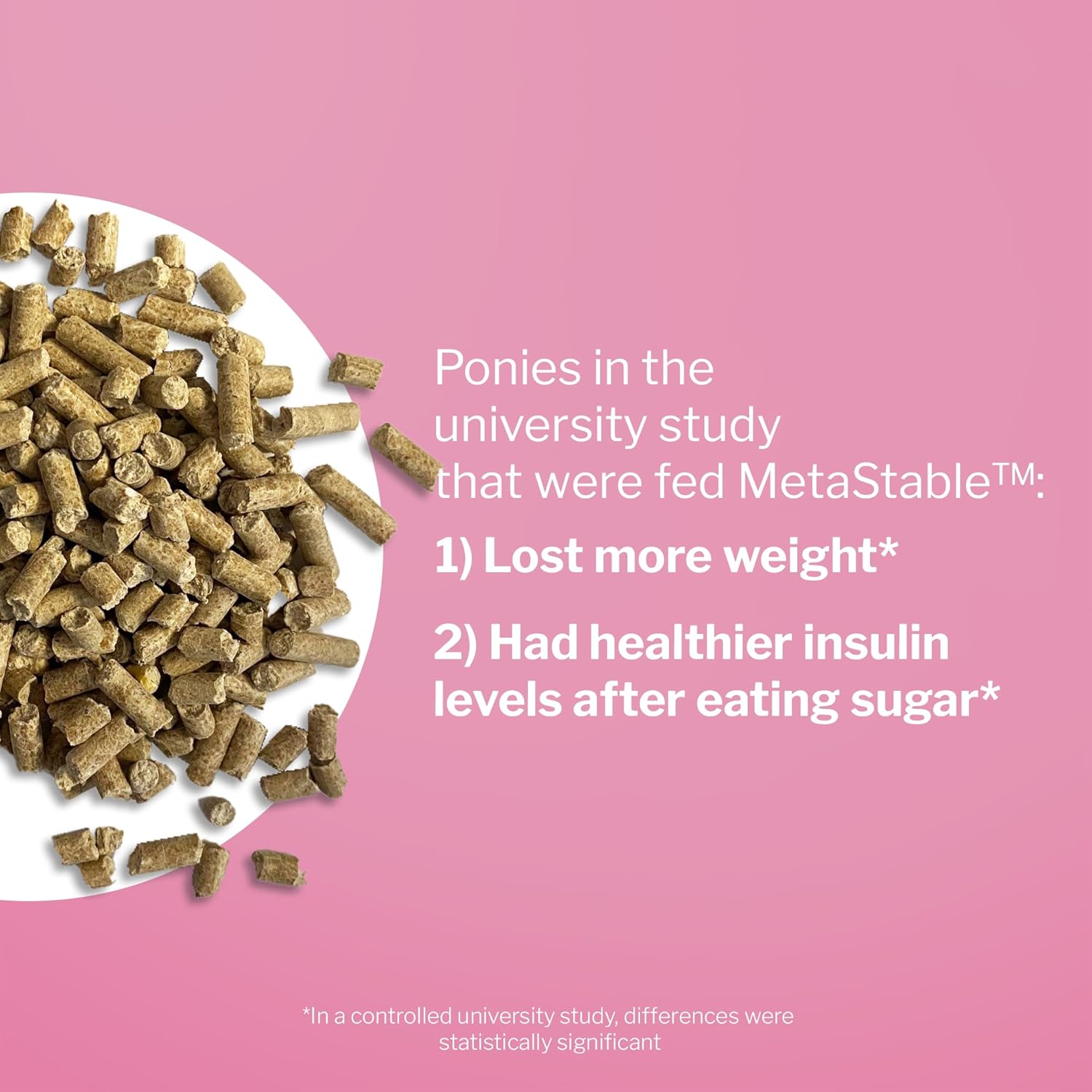 - VETERINARY & UNIVERSITY-STUDIED FORMULA – MetaStable Pellets are backed by research to support horses with Equine Metabolic Syndrome. They were shown to stabilize insulin levels and promote progress towards a healthy weight in just 60 days.