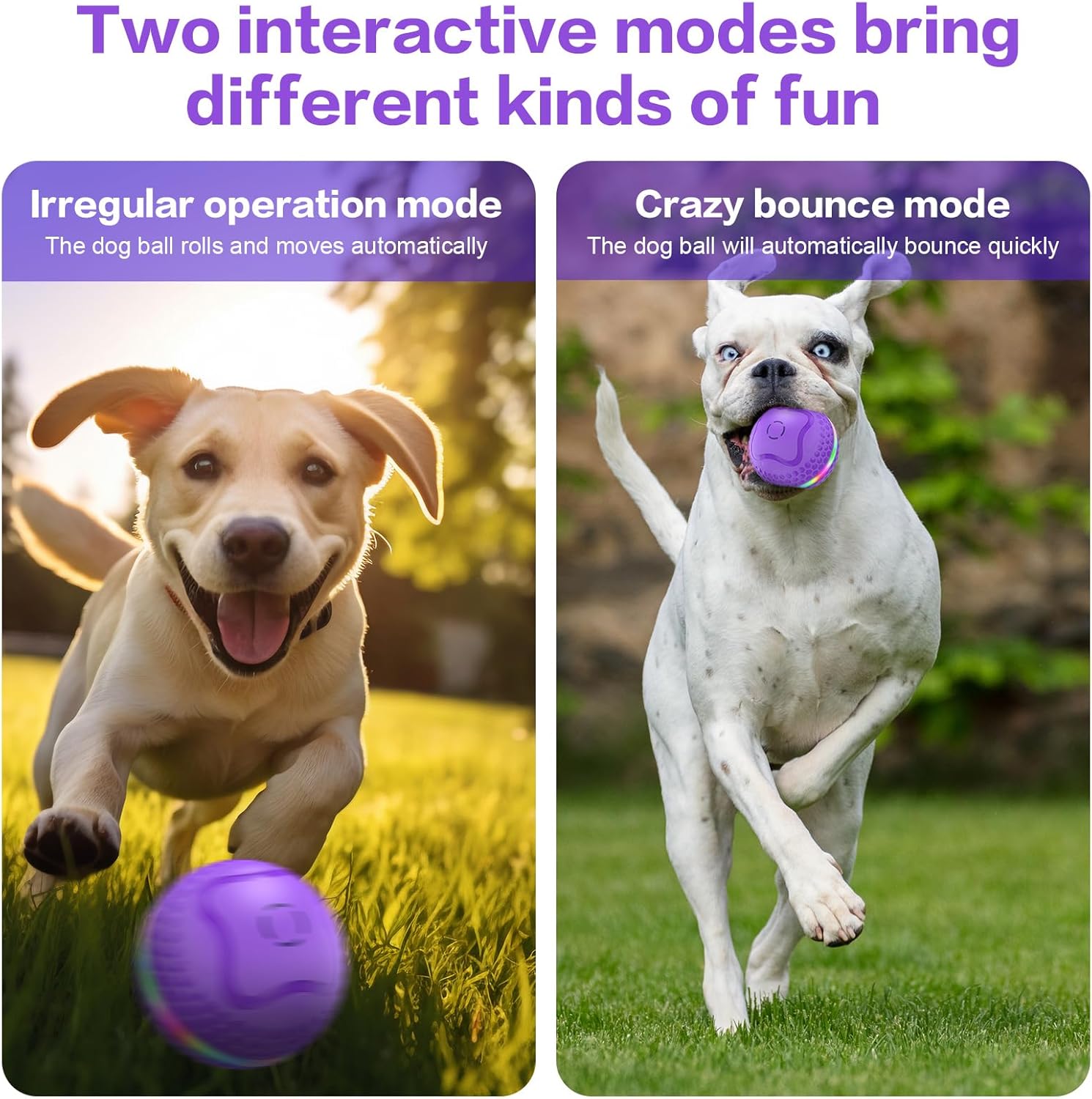 Interactive Dog Toys Ball, Automatic Rolling Toy, Lively pet Ball for Medium/Large Dogs to Relieve Boredom, Activated Automatic Motion Dog Balls Toy with LED Flash, USB Rechargeable (Purple-2)