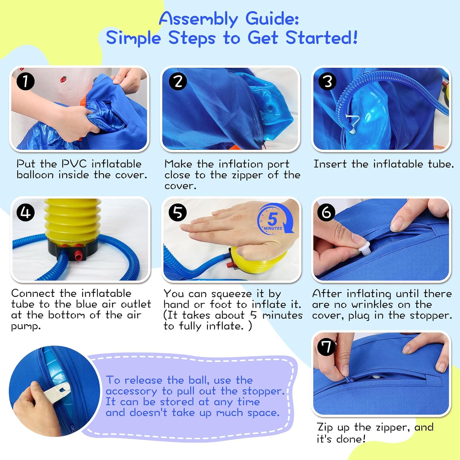- 【Convenient Handle & Secure Zipper】Equipped with a reinforced handle to discourage chewing and facilitate easy fetch games, this giant dog ball ensures interactive play. The secure zipper with a sealing flap keeps the inner ball firmly in place during intense activity, enhancing durability and safety. Plus, the removable cover is washable for effortless cleanup, even after muddy outdoor adventures