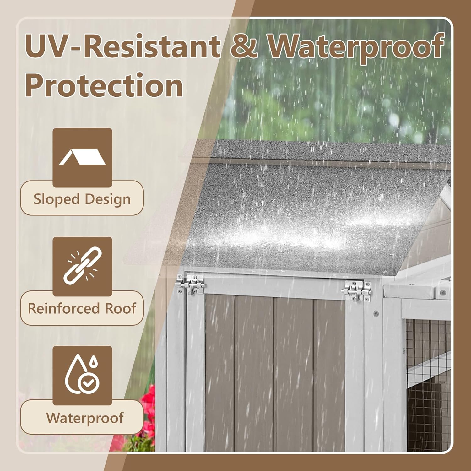 - Built Tough for Any Weather-Crafted from solid wood , this hutch holds up rain or shine. Sloped waterproof roof provides shade for your pet.