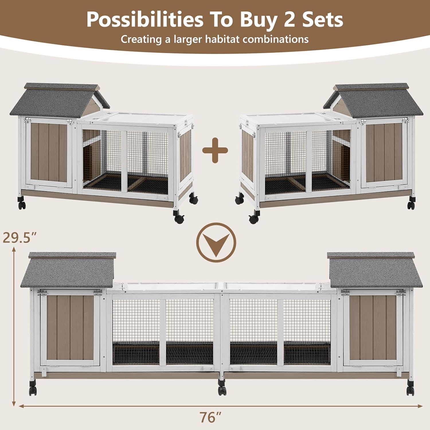 - A Comfortable House for Pets-Each rabbit hutch has a comfortable space for activities, where rabbits can roam freely, play and take a nap.Perfect for 2-6 bunnies, guinea pigs,chicks.